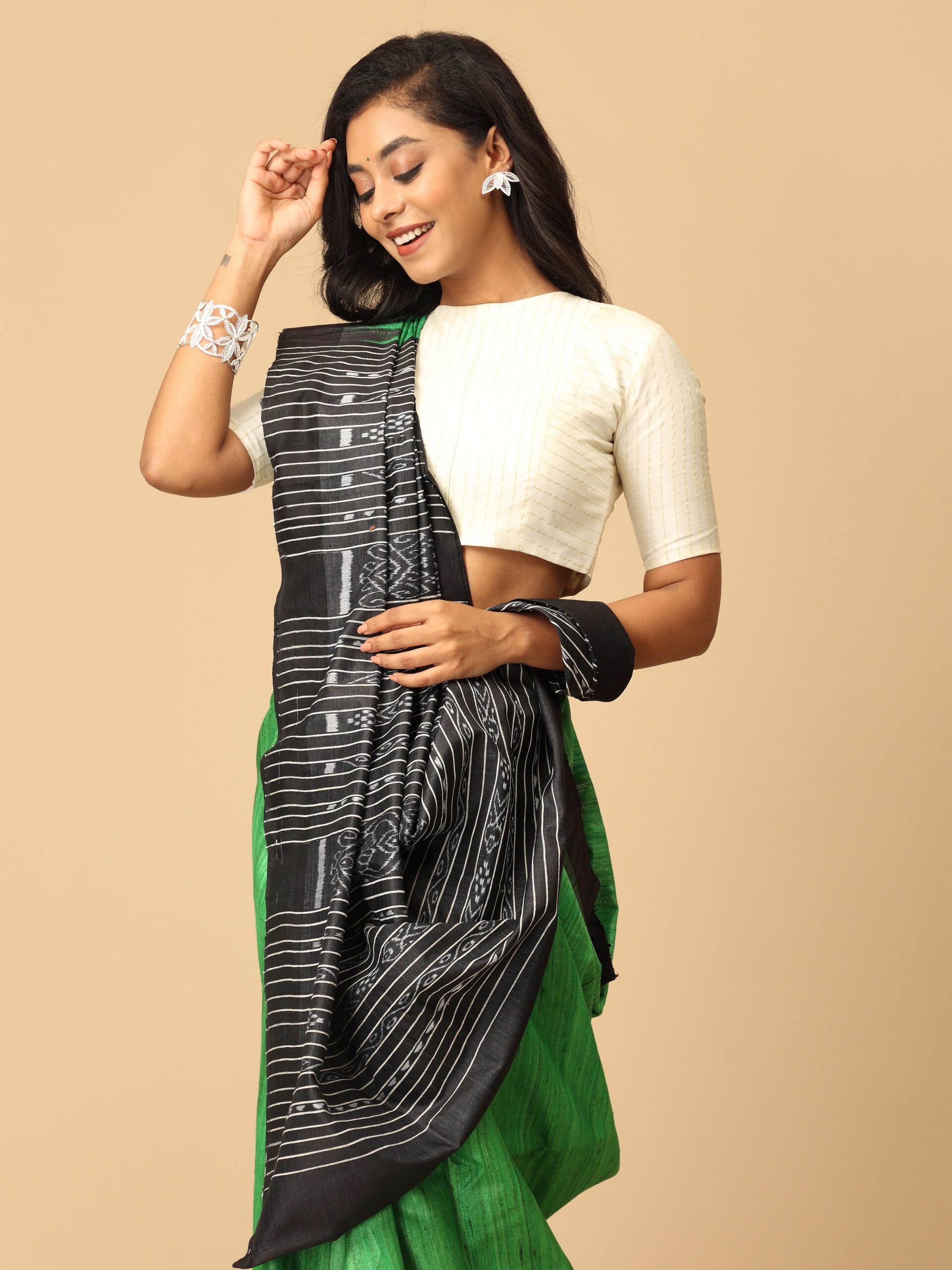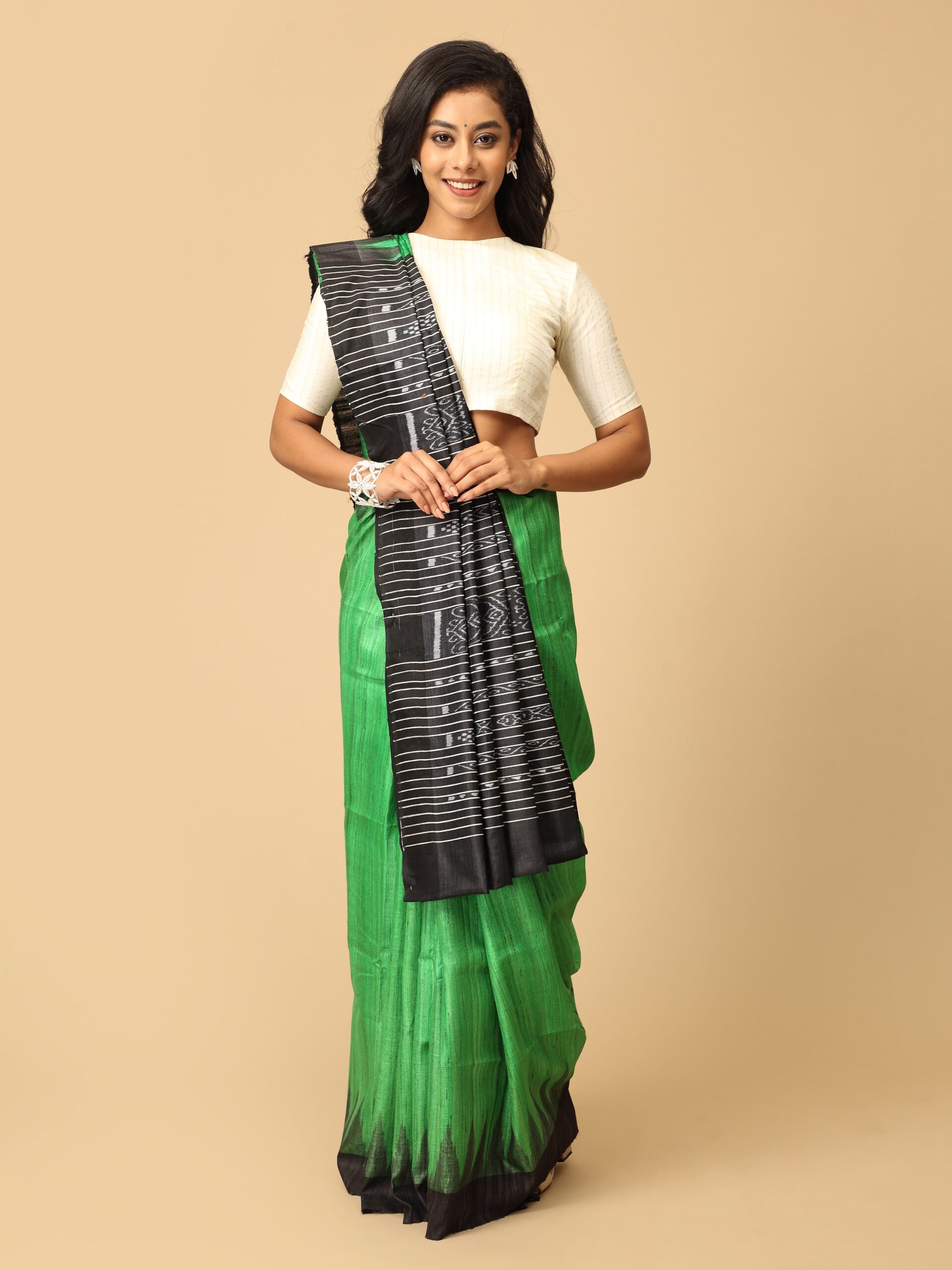 Green and black Tussar