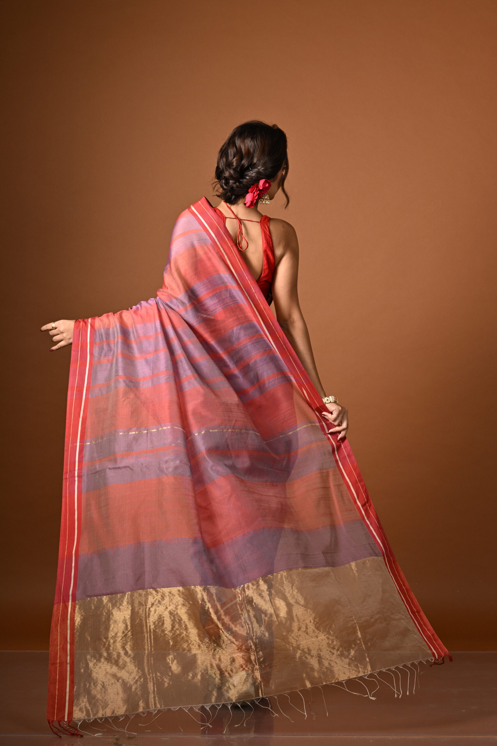 Handwoven Silk Cotton Maheshwari: Lilac Red Striped