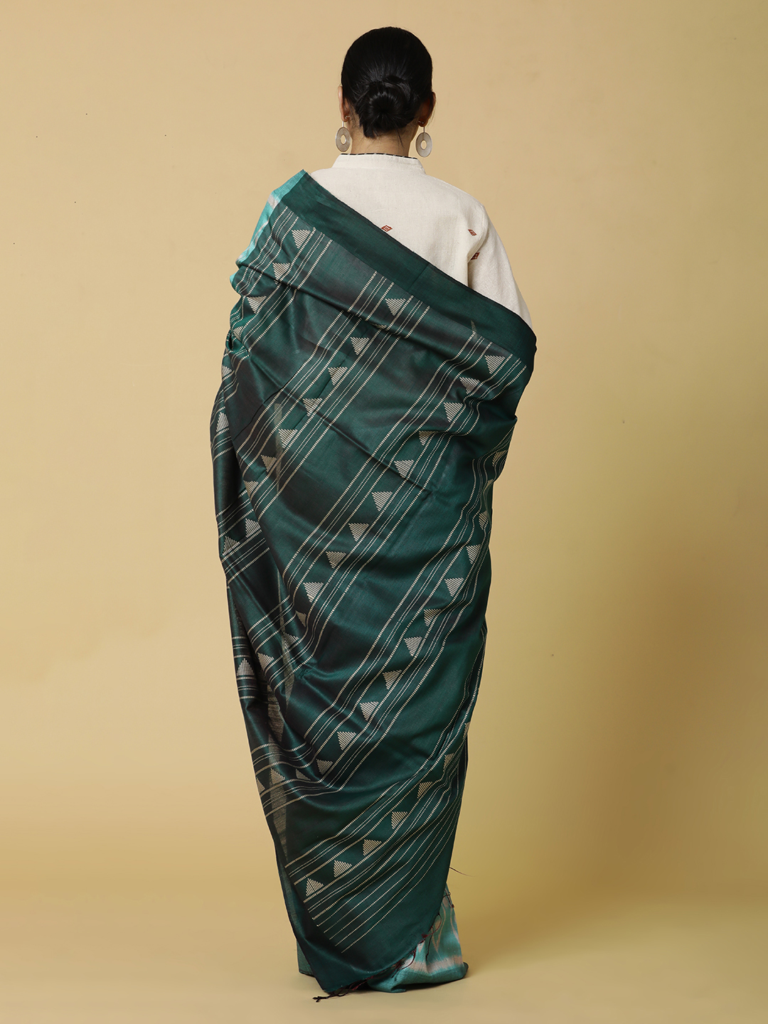 Unusual combination in Pure Tussar Silk with shades of green and Ikat motifs. Classy Understated Elegance at its best.