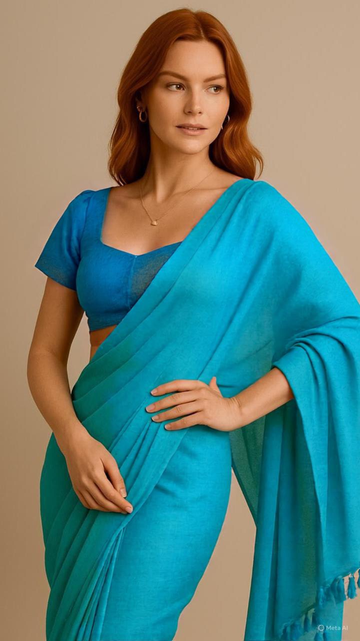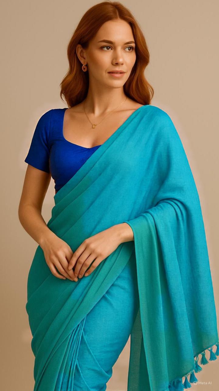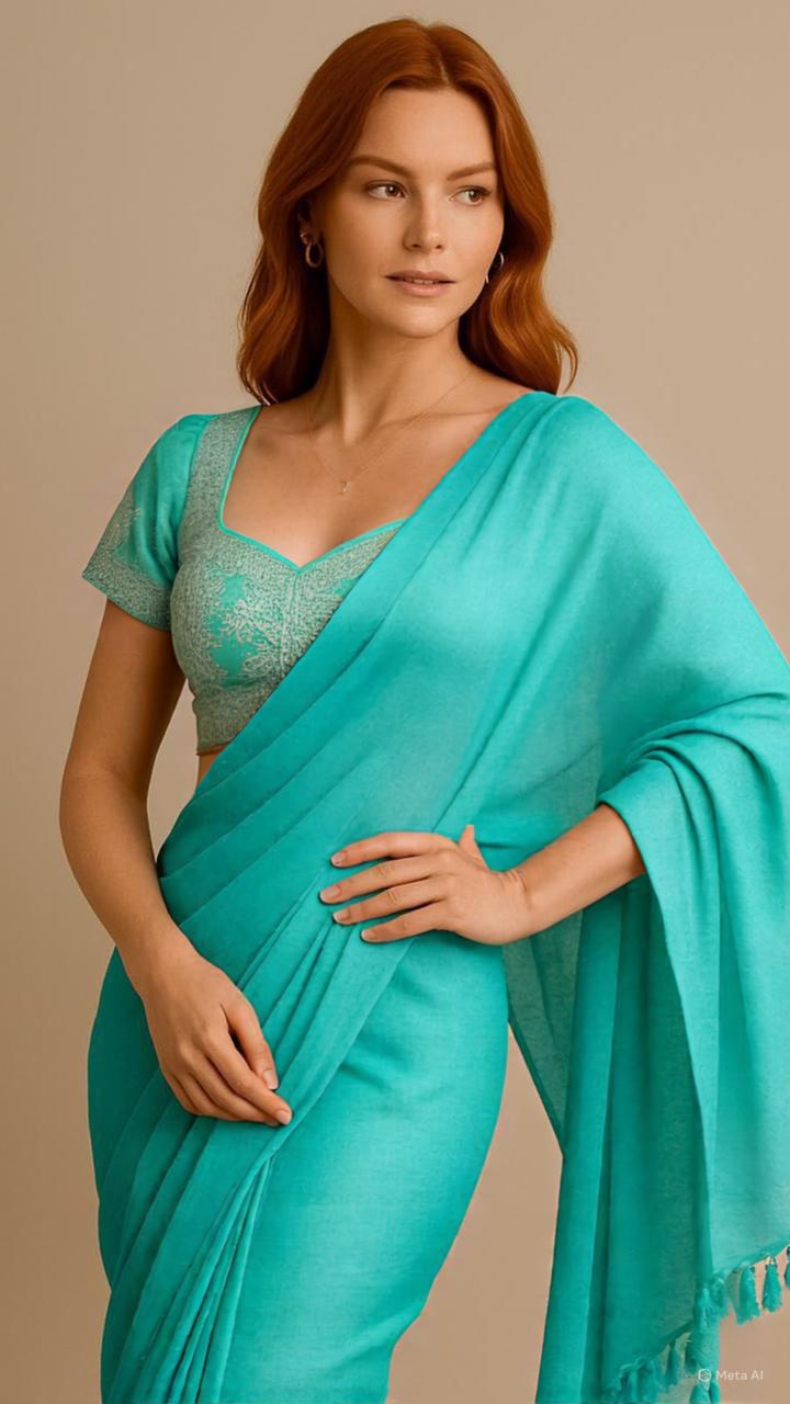 Drape yourself in effortless elegance with this lightweight mul cotton saree. Soft, breathable, and easy to style, this saree is perfect for everyday wear as well as casual outings. The soothing mint hue adds a refreshing charm, while the minimal design makes it versatile to pair with both traditional and contemporary blouses. Finished with delicate tassels on the pallu, it brings together comfort and grace in one beautiful piece.