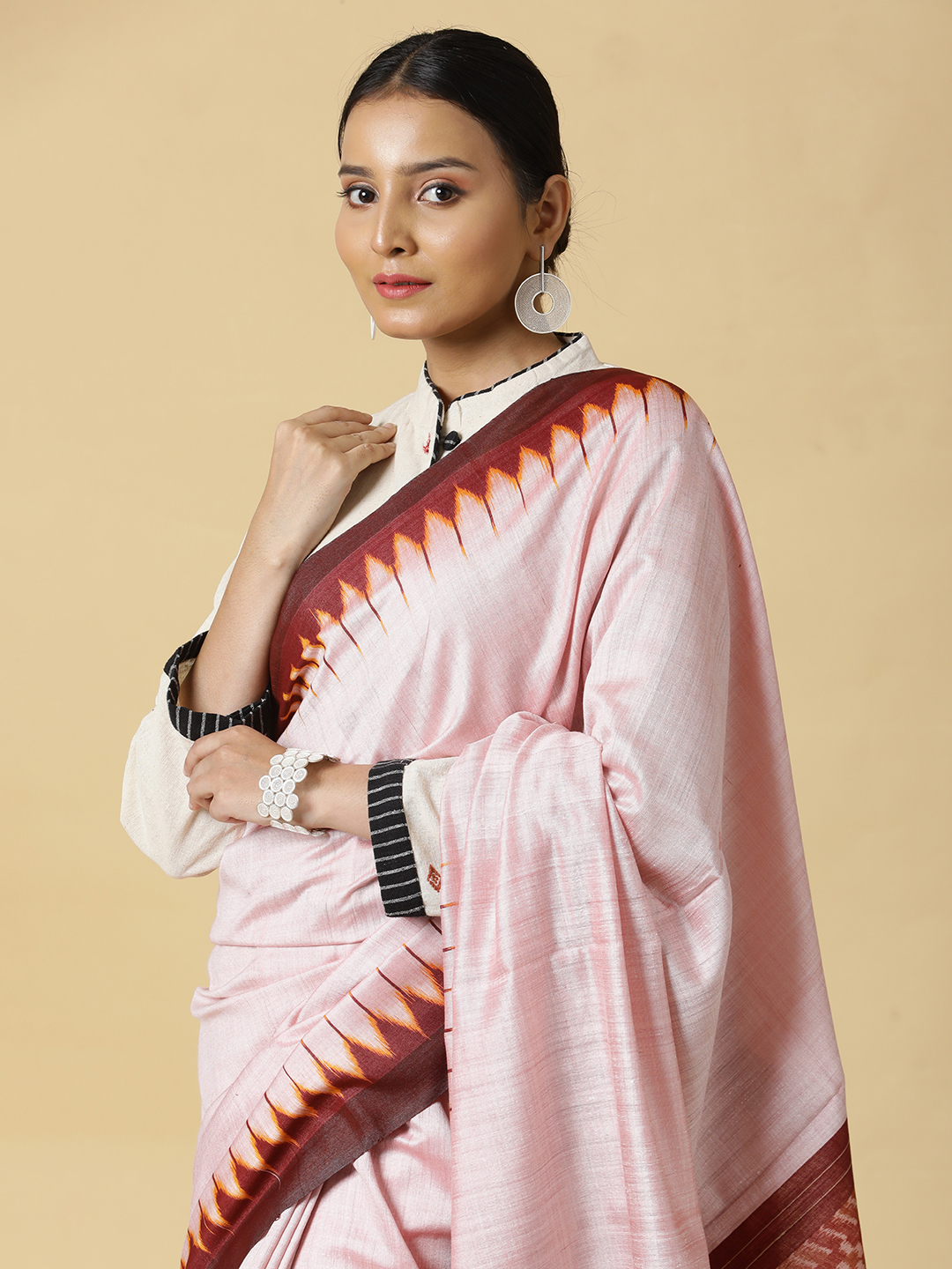 Light Pink Eri Silk With Maroon and Yellow Border